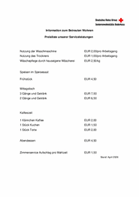 Information zum Betreuten Wohnen Preisliste unserer Serviceleistungen Nutzung der Waschmaschine EUR 2,00/pro Arbeitsgang Nutzung des Trockners EUR 1,00/pro Arbeitsgang Wäschepflege durch…