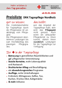 Mehr erleben & den Tag genießen DRK-Kreisverband Wesermünde e.V. Tagespflege Nordholz ab 01.01.2026 Preisliste DRK Tagespflege Nordholz gut zu wissen : das heißt: Die Kostenübernahme für…
